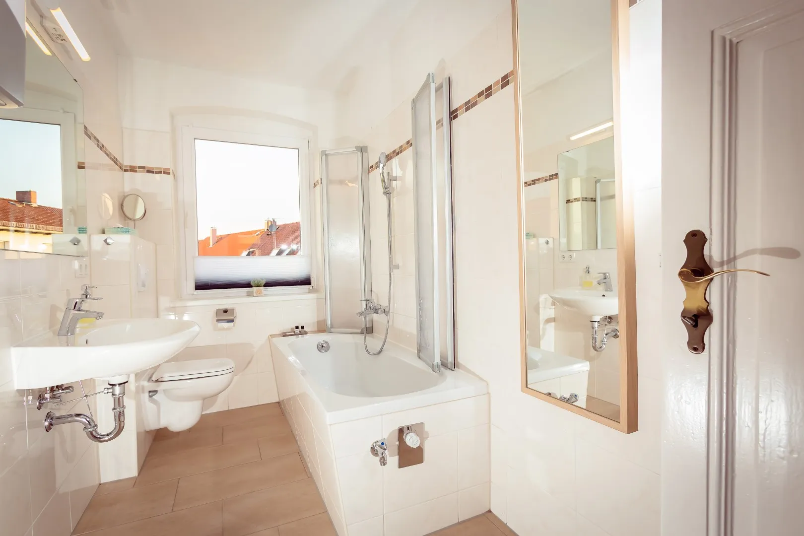 „Modern ausgestattete und geräumige Ferienwohnung. Es war alles sehr sauber. Ruhige Lage. Eine Straßenbahnhaltestelle befindet sich in unmittelbarer Nähe, sodass wir komplett auf das Auto verzichten konnten.“