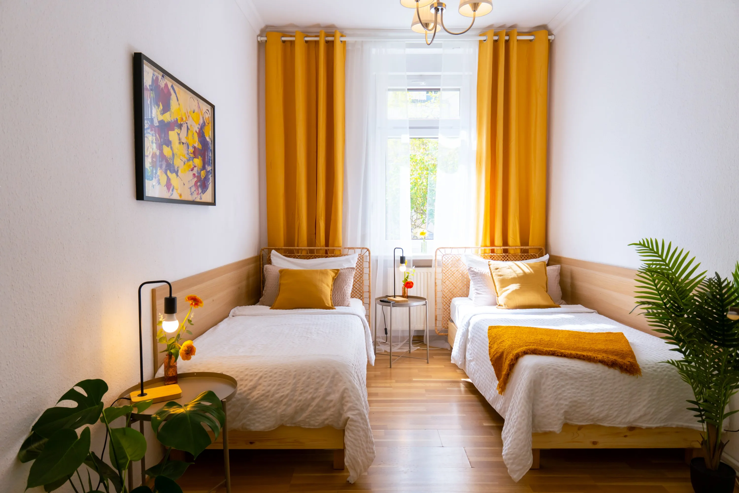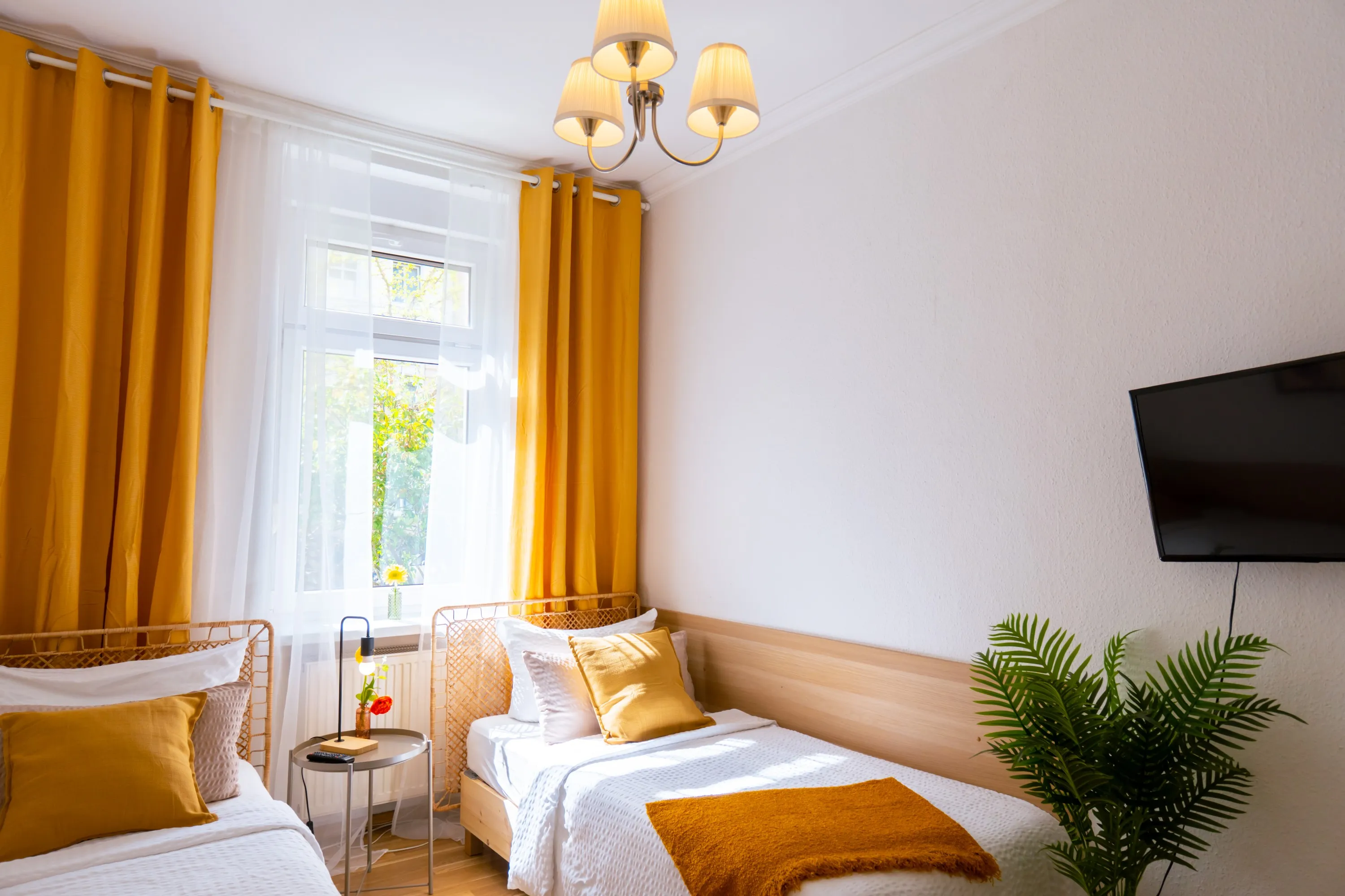 Wohnung war Stilvoll eingerichtet und die Betten sehr gut. Dazu alles geräumig gehalten. Fernseher hatte ein großes Bild. Und jedes Schlafzimmer hatte einen eigenen kleinen Schreibtisch. Dazu ein 2 Platten Induktionsfeld für die Küche. Die Bahn fast vor der Tür bringt einen Einfach ins Zentrum von Berlin.